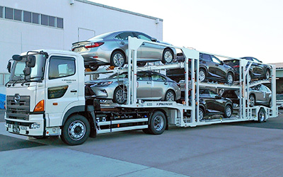 工場から出荷された新車をキャリアカーに積み、指定された販売店や港まで運びます。