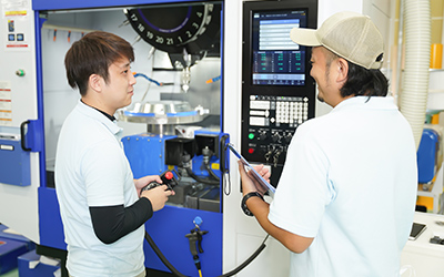 「安定した会社で手に職をつけたい」と思い入社。未経験でも先輩が丁寧に教えてくれるので安心です。今はマシニングセンターで機械加工を担当していますが、次は組立にも挑戦し、より幅広い技術を身につけたいです。