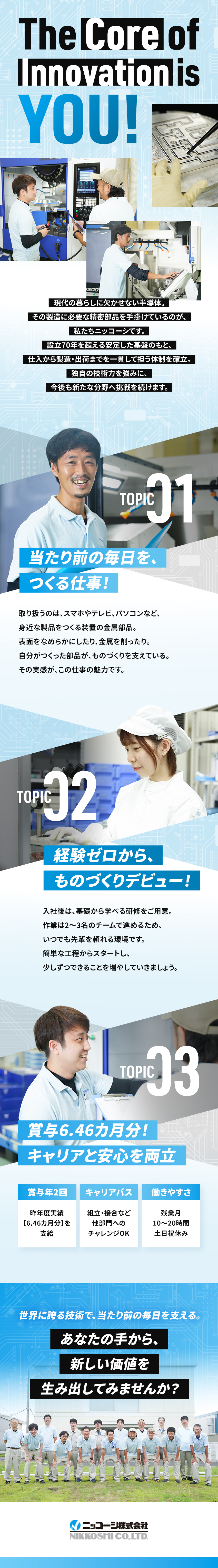 生産オペレーター/未経験歓迎/賞与6.46カ月/土日祝休み