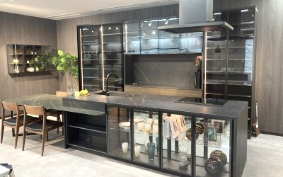 そこで培われた技術を活かし、インテリアや建築資材に用いる板ガラスや、石材・セラミックといったガラス以外の素材にもカバー範囲を拡大。さらに、ガラスと異素材を組み合わせたオリジナルのデザインガラスの開発を推進し、その商品ラインナップは毎年のように拡充されています。