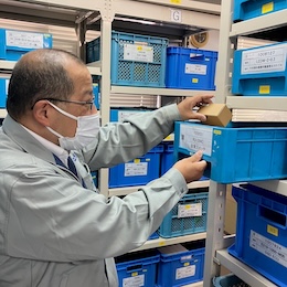 在庫を丁寧にチェック。頼れるベテラン社員です。