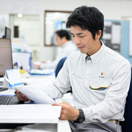 お客様から依頼をいただけるのは会社だけでなく、自分への信頼の証!そのためにはマメさが欠かせません。こまめに足を運んで会話をしたり、依頼される前に工事に関わる資料を提供したり…各所で工夫しています!