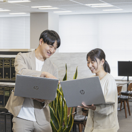 試験前には2週間程度のお休みが取れるよう、チーム内で調整。加えて5日間の試験休暇(有給休暇)を別途付与するなど、事務所全体で勉強と仕事の両立を応援します!