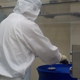 クリーンルームや製造ラインで、ボタン操作で製品を容器に充填します。ほとんどが自動化されているのでシンプルです。