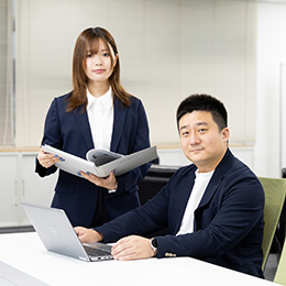 その後はOJTに移行し、小~中規模案件の区画担当を経て主担当へステップアップ。メーカー研修への参加や電力会社との協議同席など、実務を通して知識と対応力を磨いていきます。少数精鋭の組織だからこそ、メンバー同士で知見を共有しながら、着実にスキルを高められる環境です。