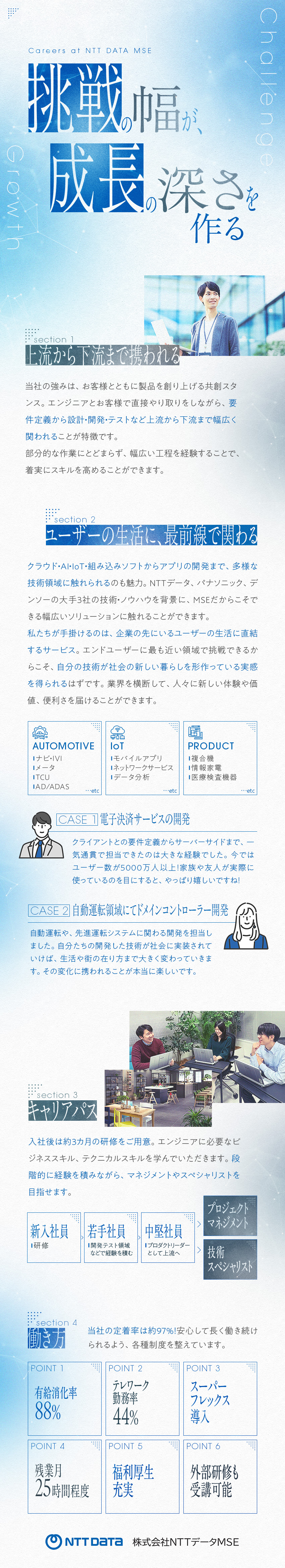 ・完成車メーカー及びTier1を始めとした自動車機器メーカー向けを中心とした、最先端の製品やサービスの開発(車載プラットフォーム、車載機器へのスマートフォン連携ソリューションの開発)