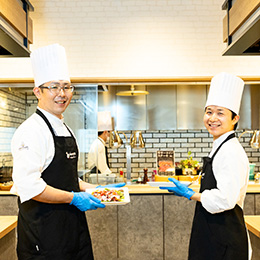 現在は調理をメインに担当していますが、今後はフロント業務や他のエリアのホテルでの勤務、本社の管理部などでも働いてみたいです。志向やライフステージの変化に合わせて、働き方を柔軟に変えられる点も当社の魅力です!