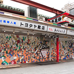 ◎浅草仲見世商店街の全89店舗のシャッターを一大キャンパスに見立てた『浅草絵巻』