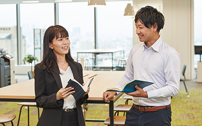 中途入社者研修や階層別研修、社外研修など、スキルアップのための制度も充実。