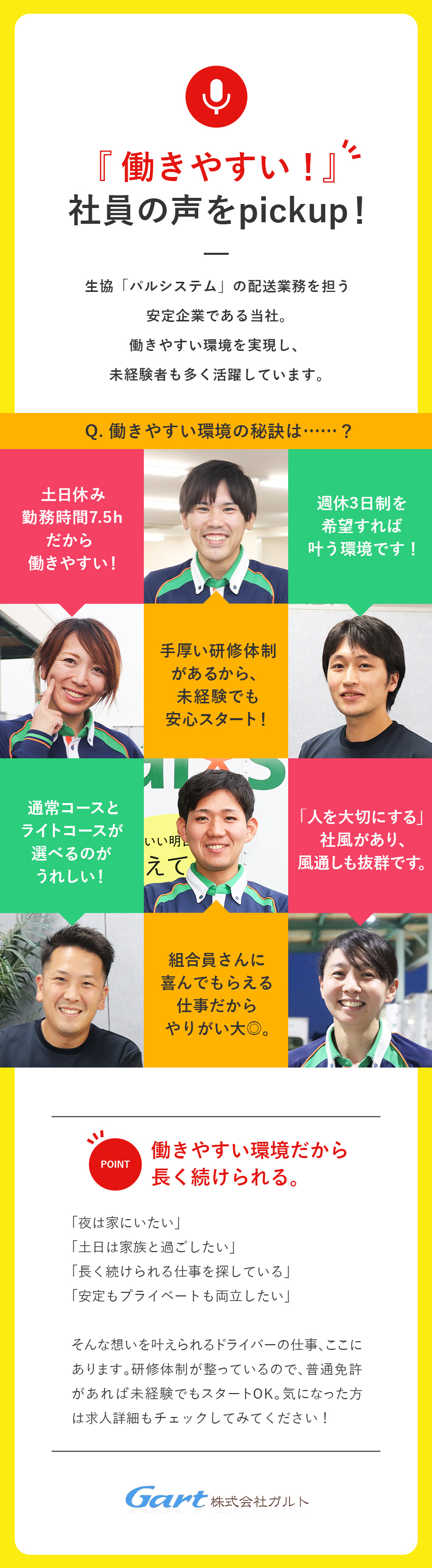 【6週~8週の手厚い研修あり/夜間配送&再配達なし】『パルシステム』の配送をお任せします!