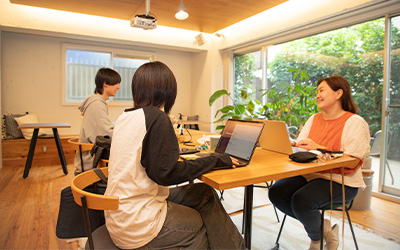 もちろん、ひとりで黙々と作業できるスペースもあります。また、自社カフェは休憩時間にホッと一息ついたり、資格取得の勉強の場として利用する人もいます。