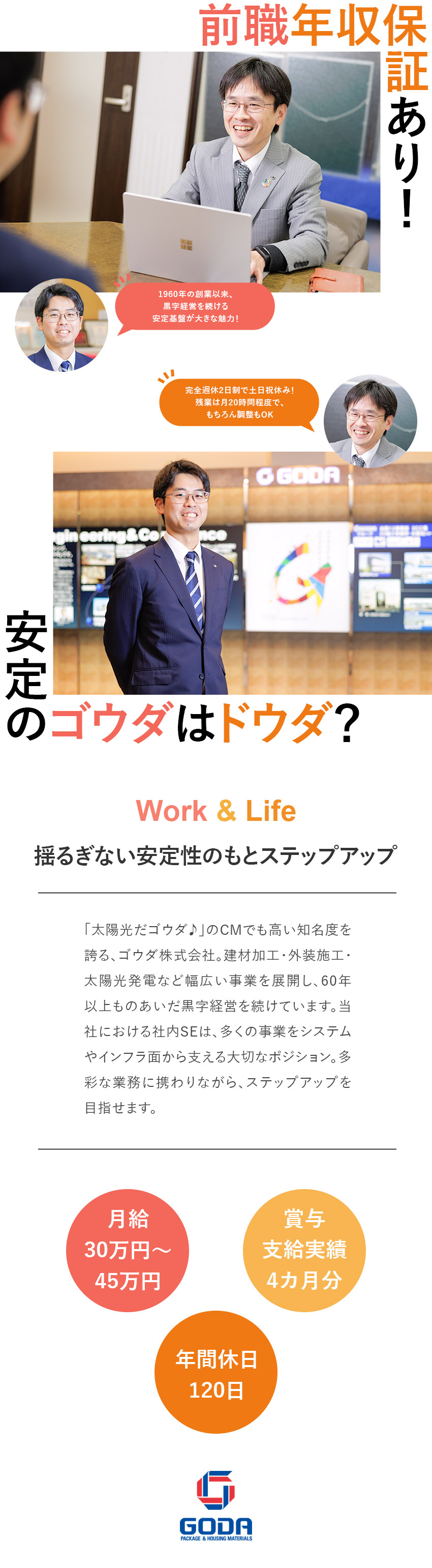 社内SE/月給30万円以上・前職給与以上保証/残業月20時間