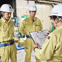 ビルのオーナーや他の工事会社、協力会社の職人さんなど、社内外の人と接することが多い仕事です。円滑に業務を進めるために、コミュニケーションが大切です。挨拶や相手に合わせた言葉選びなど、よい関係性を築くための努力は欠かせません。