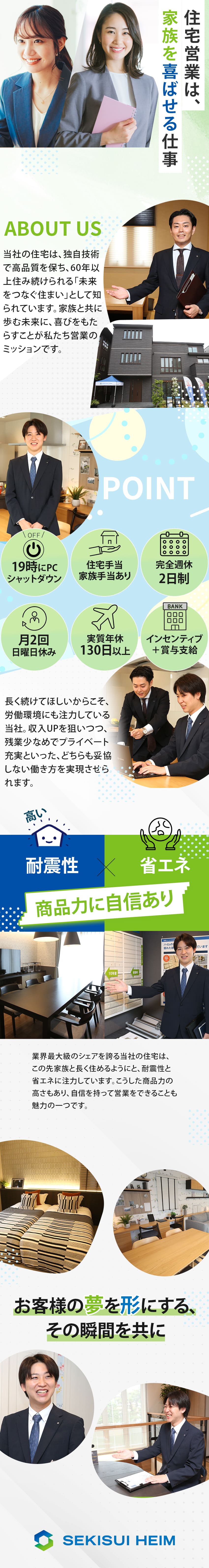 住宅営業/完全週休2日/未経験歓迎/残業少なめ/社宅・寮あり