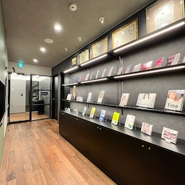ラウンジには当社が手がけた作品やメディアの数々がディスプレイされています。