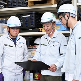入社後は、倉庫の整理を通じて材料の名前や電線の扱い方を覚えることからスタート。先輩によるOJTで基本的な作業をしっかりと身につけ、徐々に現場に慣れていきましょう。