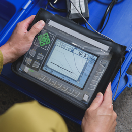 超音波で鉄骨の中に傷がないかを探る装置です。慣れてしまえば、扱いも決して難しくはありません。