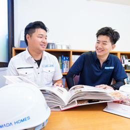◆建物の躯体はもちろん、外壁や床材、バス・トイレなどの設備類まで、一つとして同じものがない家づくりに取り組めます。仕事も面白いですし、お客様から満足していただけることも多くなります。