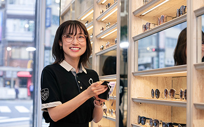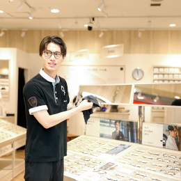 「お客様の使用シーンや目的をお伺いし、その方の雰囲気やファッションに合ったメガネをご提案します。商品の性質上、『似合う』だけでなく、メガネとしての機能性も重要です。豊富な商品ラインナップから、機能性とファッション性の両方にご満足いただける、最適な一本を見つけることが私たちの腕の見せ所です。また、『このメガネをかけることで、よく見えるようになった。自分の印象がこんなふうに変わった』といったお客様の変化を一緒に実感できるのも、この仕事の大きなやりがいです。」