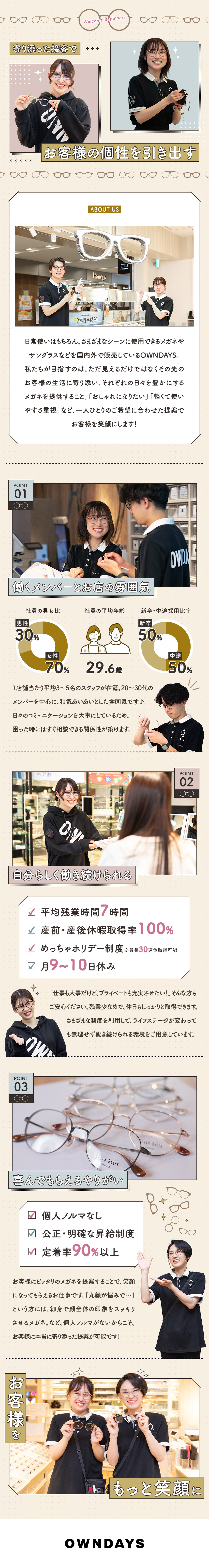 【首都圏】メガネコーディネーター/OWNDAYS店舗の接客担当◆第二新卒・未経験歓迎/個人ノルマ無