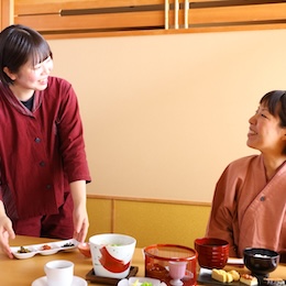 配膳のタイミングを先輩と一緒に確認!旅館での勤務経験がない方でもゼロから学べます。
