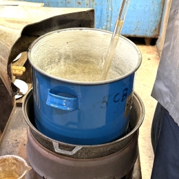 ・金属と樹脂を反応させて、レジネート(液状のもの)をつくる。