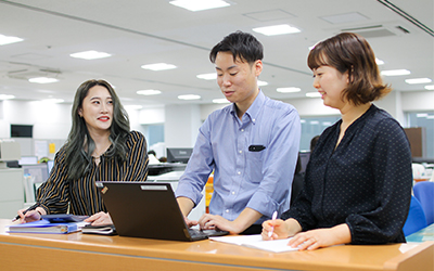 配属先では、営業と同数の事務スタッフが在籍しているとのこと。新人が入ると、事務スタッフ同士はもちろん、営業も含めてチームでフォローされているそうです。