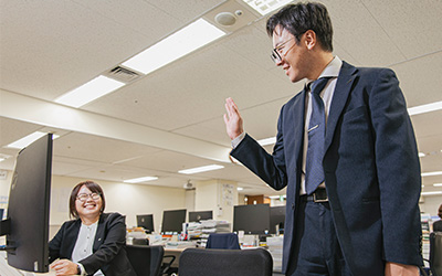 雰囲気の良さも当社の魅力です。他部署も含めて垣根なく相談できますし、仮に失敗したとしても嫌な顔一つせずサポートしてくれる人たちばかりなので、とても心強い職場ですよ!