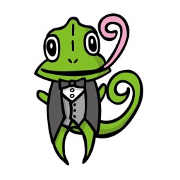 マスコットキャラクターのルーカス君。カメレオンのように、時代とともに変化する商社であり続けます。