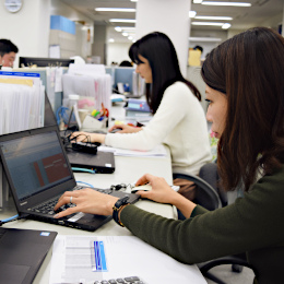 仕事の進め方や英文メールの作成などわからないことは気軽に質問できる話しやすい雰囲気のチームなので、