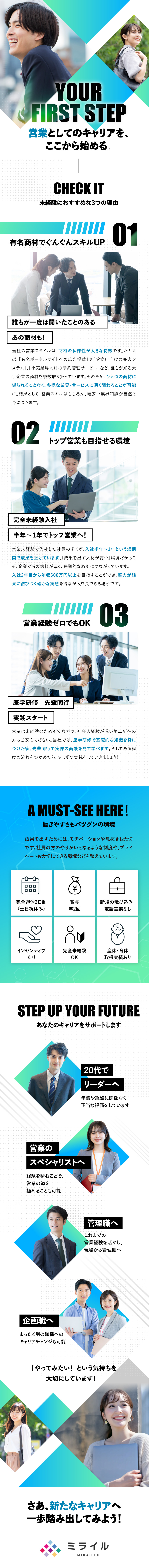また業務を通して、確かな営業スキルが身につくのはもちろん、多彩な業界・商品・サービスについての知識が身につくため、自身のキャリアの幅も広がり、市場価値も自然と高まっていくでしょう。