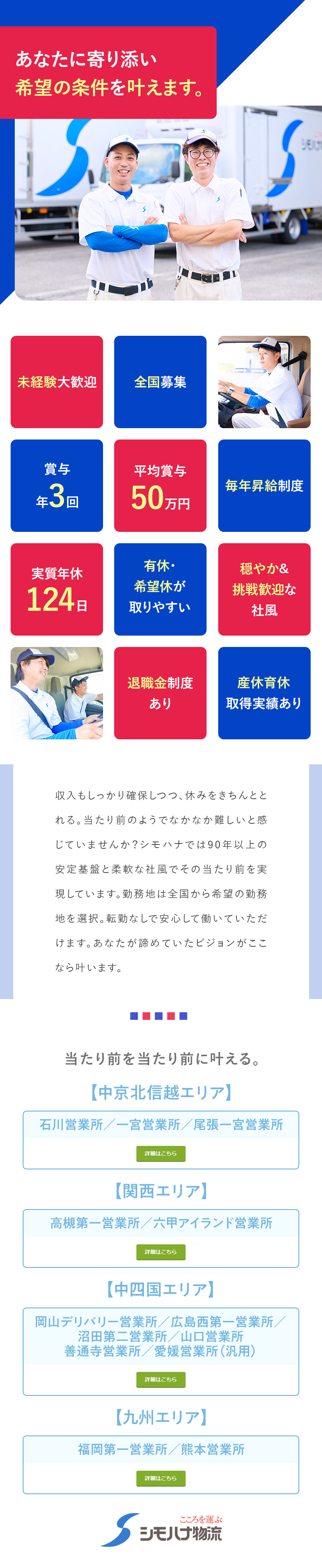 大手物流ルート配送/未経験歓迎/賞与年3回/年収500万円可