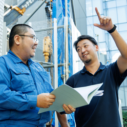 昇降機の技術職は「直接機械に触れる」「PCのソフトを利用し制御システムに反映する」「機械・電気図面を読む」など幅広い知識が求められるため、いきなり全てを教えることはしていません。この道のプロになった先輩達が、一歩一歩、あなたの成長度合いを見ながら新しいことを教えていきます。(詳しくは「入社後のステップ例」欄をご覧ください!)