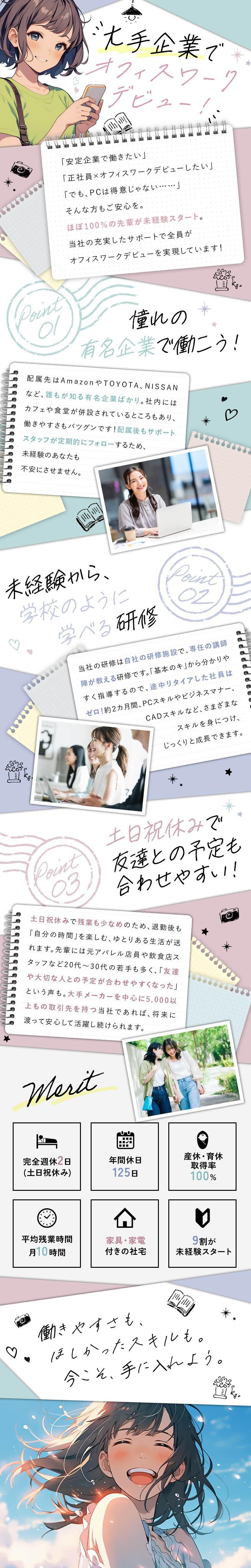 【憧れの大手企業へ!】オフィスワークデビューも歓迎