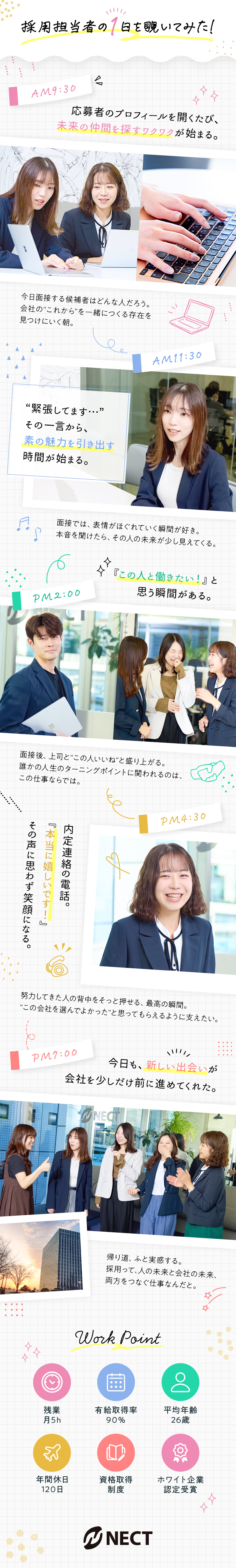 NECTの取材を通じて強く感じたのは、社員一人ひとりの成長に本気で向き合っている企業だということ。制度の充実はもちろん、日常の何気ない言動にも「人を育てる」文化が根づいていました。