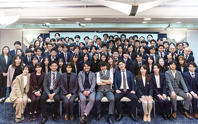 新入社員の研修後、本配属が決まったタイミングで歓迎会の場をご用意。旬の味覚を楽しめるお弁当を囲み、歓談します。