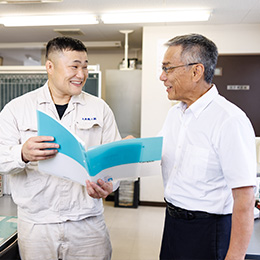「私も最初は工具の名前もさっぱりわからず、右往左往する状態でしたが、山田さんに相談しながら安心して挑戦できています。不安もあるかもしれませんが、一緒に専門性を身につけていきましょう!(入社2年目の高橋さん/29歳)」