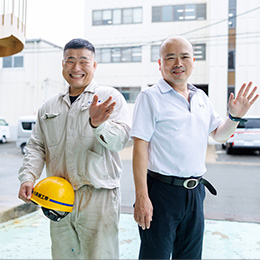 佐々木社長(写真左)も撮影に参加!社長が設計を手掛けていて、とにかく頼りがいのある優しい社長です。