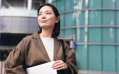 たとえばスケジュールの調整で社外の人と連絡を取る時、分からないことがあって先輩に質問する時、学んだことをアウトプットする時など…自ら考えて行動することが大切です。常に受け身でいても、なかなか成長できません。もちろんサポート体制は万全ですが、主体性を持って働くことが必要です。