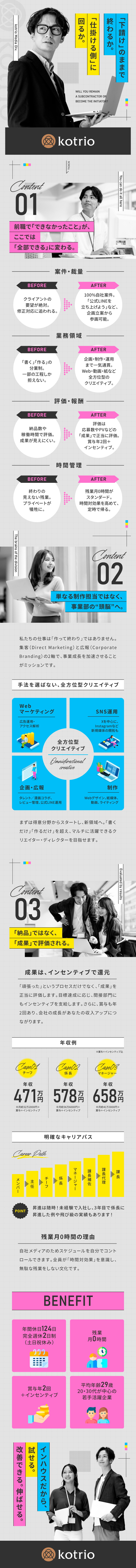 前職はクライアントの予算内でしか動けないことに限界を感じていました。コトリオは「効果が出るならやる」と即決できるのが魅力。自分の戦略で応募数が倍増した時の手応えは、他ではなかなか味わえません。