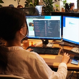 デュアルディスプレイを支給するなど、業務効率の面でも「働きやすさ」に配慮しています。