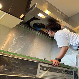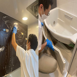 分譲マンション『グランスイート』シリーズをはじめとした2年に一度の「ハウスクリーニング付きマンション」にご入居されているお客様宅のクリーニング。2年に1度、キッチンのレンジフードや浴室などの分解可能な部分を取り外し、普段は手の届かないところまでキレイにする専門的なクリーニング業務です。