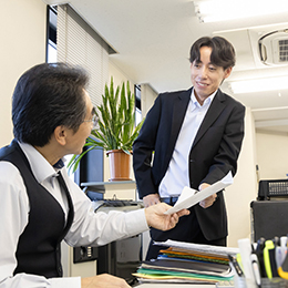 前職はコンビニの店長でした。お客さまとお話しするのが好きだったので、営業職に初挑戦。少数精鋭ゆえ裁量権の大きい当社。どんどん知識や経験が増えて、今では自信をもってお客さまに提案できるようになりました!