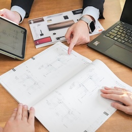 お客様から相談を受け、意匠・性能・取り付け方法・コストを考えながら、一緒に設計を進めていきます。技術協力が完了し受注した後には、実施設計担当者に引き継ぎます。
