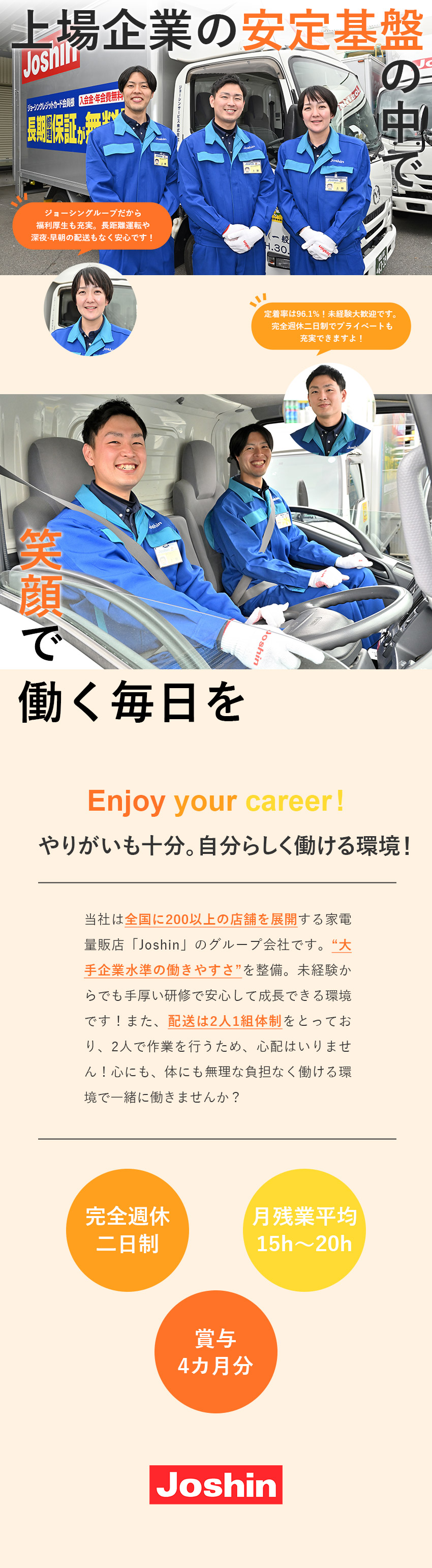 家電製品の配送スタッフ/賞与4カ月/完全週休2日制/日勤のみ