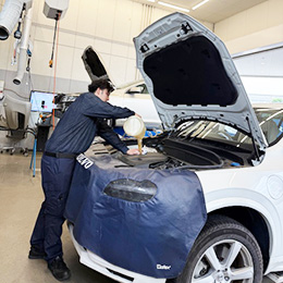 お客様の安心・安全なカーライフをサポートできる誇り、やりがいがある仕事です。現在は頼れる先輩方から技術を学びつつ、メーカー資格の取得を目標に日々勉強しています。