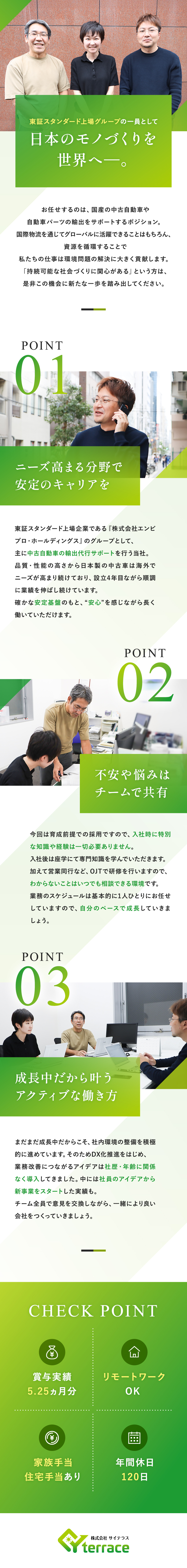 そんな中で当社はモノづくりを支えるサーキュラーエコノミーを目指し、物流に関する代行サービスを展開。私たちの取り組みは社会貢献にもつながり、「海外と関わる仕事がしたい」「環境問題の解決に貢献したい」という方にはピッタリな働き方が叶います!