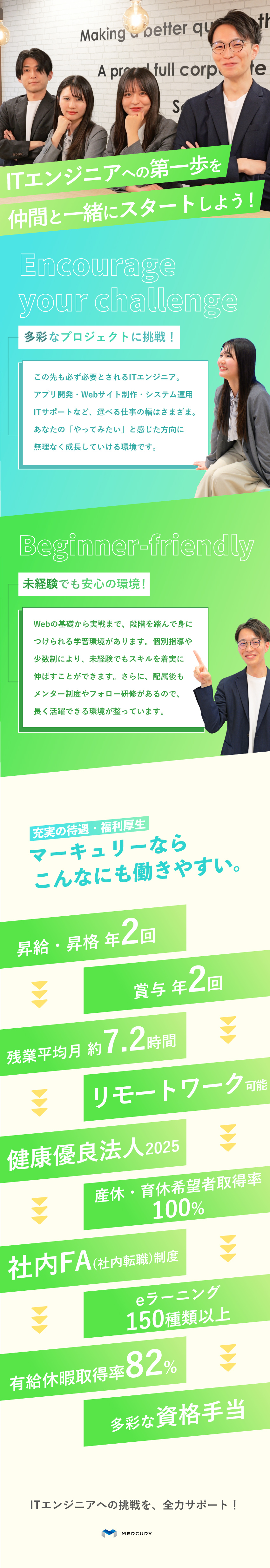 ITエンジニア/未経験9割!7カ月研修×同期と成長できる環境/小さな成功の積み重ねで、大きく成長!