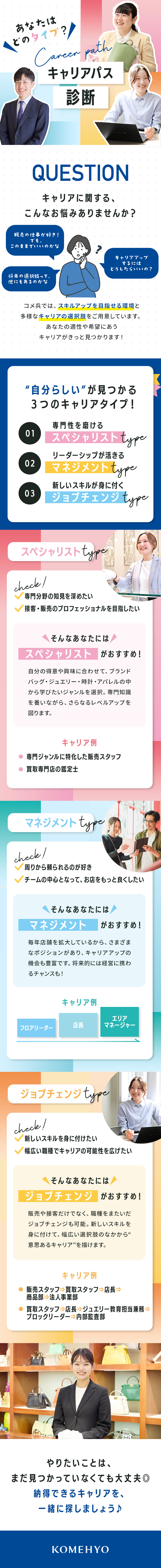 【経験を活かしてステップアップ】「KOMEHYO」店舗での販売・買取をお任せ/キャリア申告制度あり