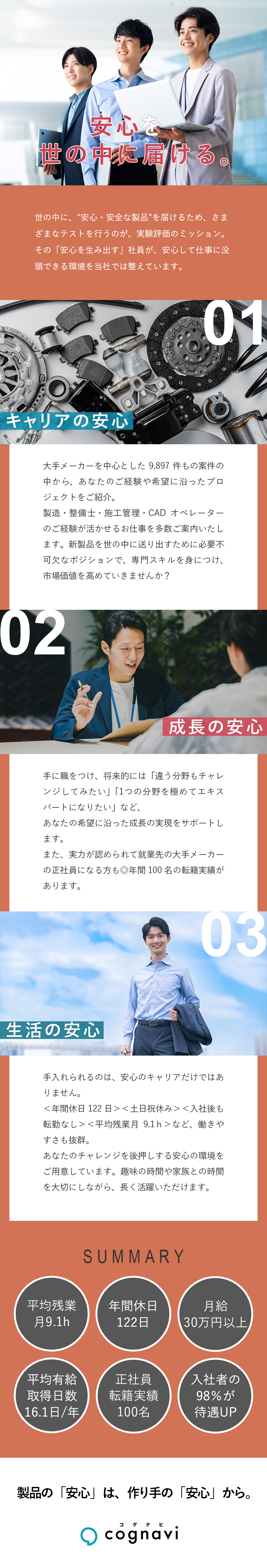 【経験が活かせるお仕事を紹介】自動車、家電、精密機器等の各種実験評価業務をお任せします